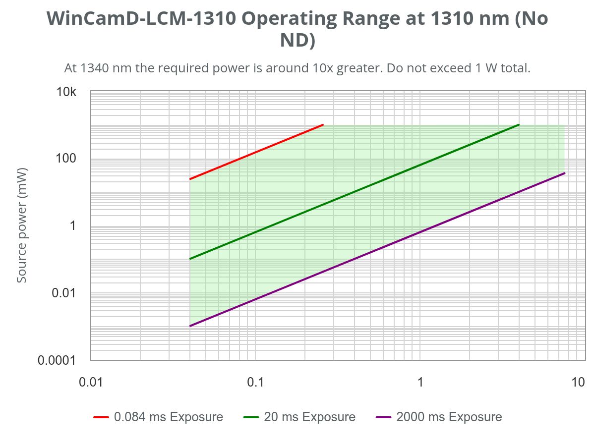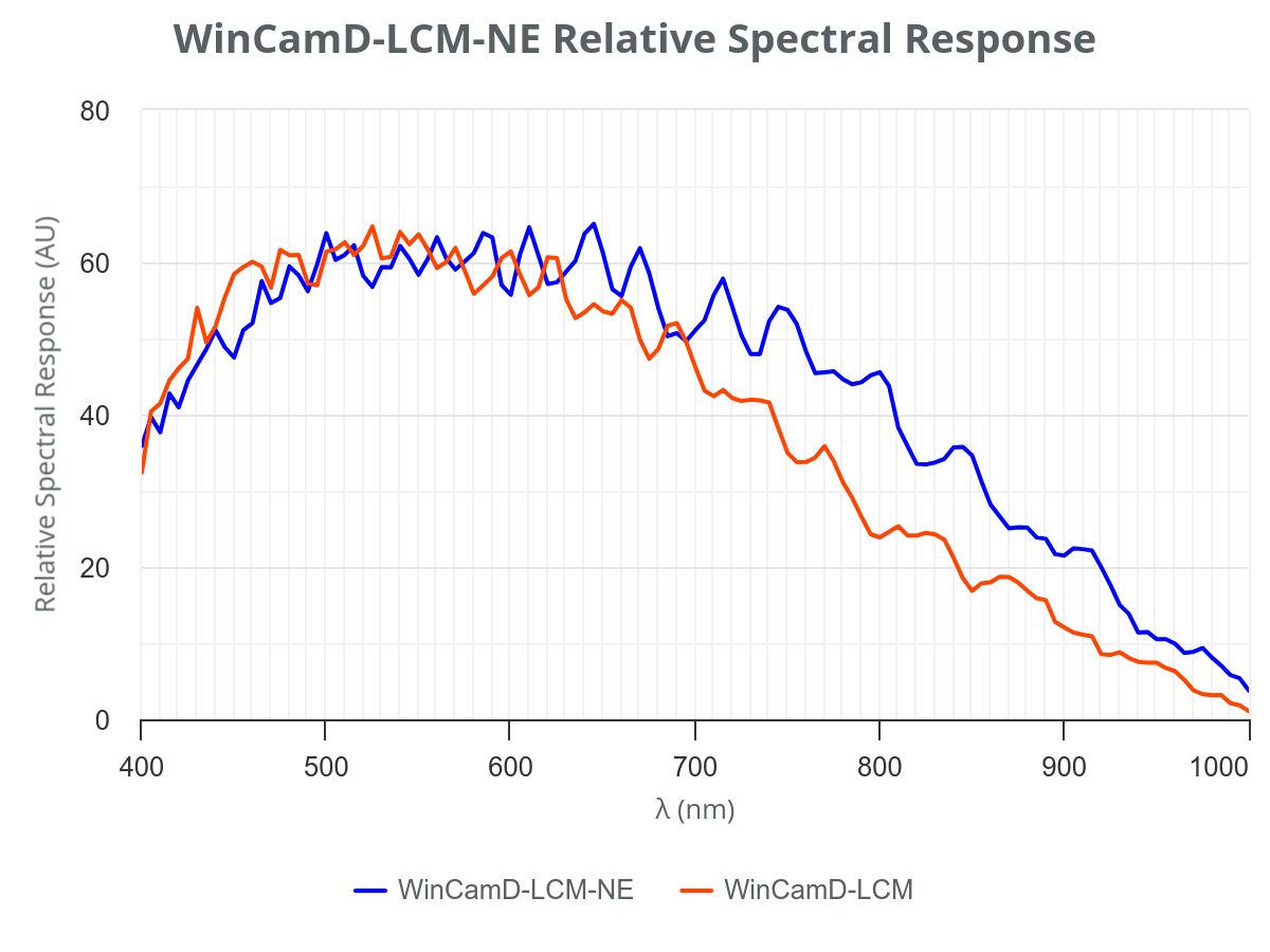 WinCamD-LCM-NE: 355 to 1150 nm WinCamD-LCM-NE-1310: 355 to 1350 nm (includes long pass filter) |