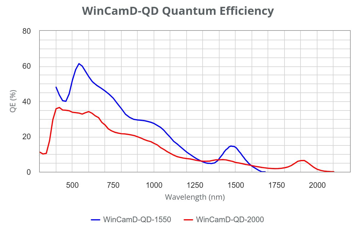 • Description: The WinCamD-QD series uses colloidal quantum dot sensors to provide high quality beam profiling for visible, SWIR, and eSWIR sources. With 15 μm pixels and a wavelength range as wide as 350 to 2000 nm