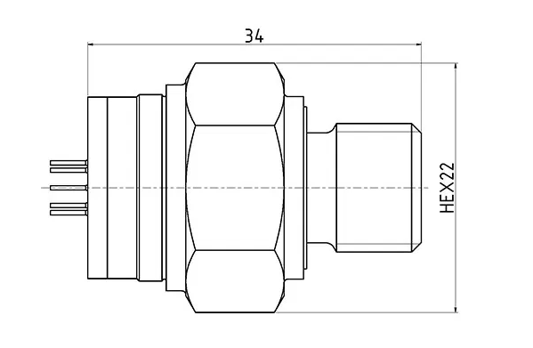 Dimensions:HEX22 x 34mm